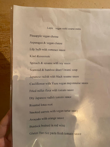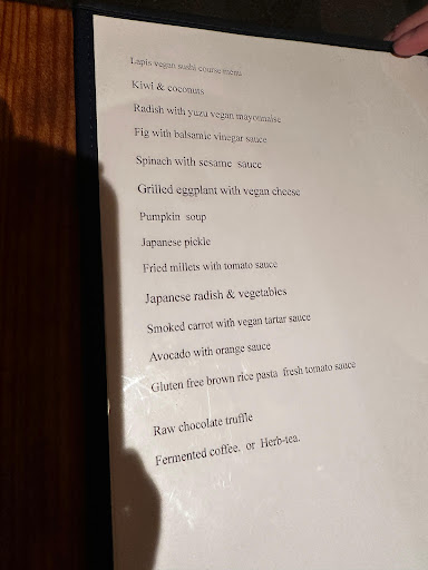 Read moreThis was some of the best food we had while visiting Japan! We ordered the fixed sushi menu and everything was excellent. The ingredients are fresh and each course was delicious. The variety of flavors and pairings was expertly conceived and executed. The menu is entirely vegan but the flavors are not limited by this. In fact I would recommend the restaurant to anyone interested in a creative and artfully constructed culinary experience. Our selection even had several Italian items which were perfectly seasoned and delicious. The chef was very kind and talented. A five star...