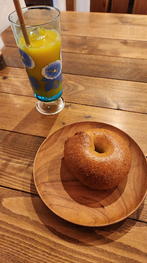Read moreThe bread was good but I wouldn't really call this a bagel place because there was no spreads, nothing to put on the bagel it's just plain, or baked into the bagel with interesting combinations...I had a plain wheat bagel with nothing on it. So it's more bread shop not a bagel. Dining in was confusing because you sit down but the bagels are by the register so you order that up front and then drink back at the table. Paid over 1,000 yen for two bagels and 1 orange juice so a bit pricey too.