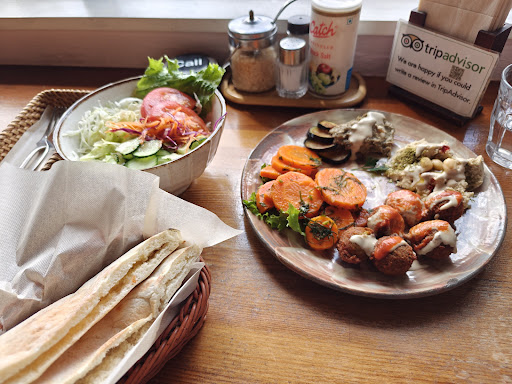 Read moreI´ve been coming here almost every week while living in Kyoto because the Falafel are just great! There are so many clearly marked vegan options. I always get myself a Falafel Sandwich or a Mixed Plate which are also my personal recommendations. Everything tastes amazingly good and compared to other restaurants in Japan you can eat a lot of fresh salad which is just great. Also, while it can get busy during peak season, you usually don't have to reserve which is a plus point imo.