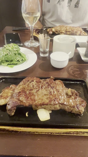 My girlfriend and I stumbled upon this place while walking back from the train station (Imedegawa) to our airbnb. We were scratching our heads when we saw the sign advertising flowers and steak but it looked pretty cool from the outside. It was a pretty small place and they spoke primarily Japanese w/some English. The menu was in Japanese but there were pictures that allowed us to figure out what to order. They have a simple menu of salads (small or large), rice (200 yen) and either sirloin or ribeye in various volumes. It comes out on a small cast iron skillet and we ordered 2 of the 170g steaks which was enough for my gf (only 1000 yen) but I should have gotten the 255g one (1500 yen). It was really tasty and well worth it! We ordered 2 beers, a large salad to share, 2 orders of rice, two170g steaks and it came out to about 3700 yen! Would definitely recommend this place for someone...