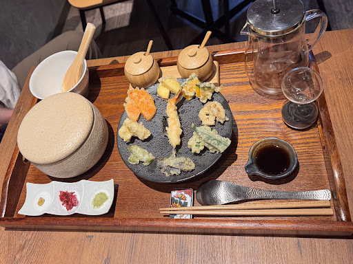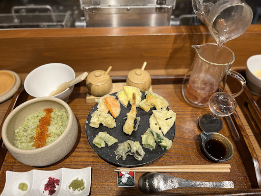 But the Tendon (tempura over rice) was fantastic. The tempura was expertly done; the batter was genuinely light and crisp, perfectly fried, and not oily at all. They also make the dish unique by serving it with matcha rice, and they offer great custom spices like Kyoto matcha powder and yuzu pepper. They also provide you with the ochazuke at the end.