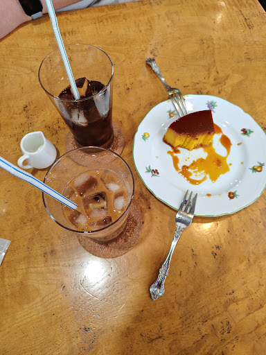 I'm an American visiting Japan, and I know zero Japanese. My fiancee and I came across this coffeeshop right outside of the Momoyama train station. Bear in mind, the entire menu is in Japanese except for two items (green tea). As far as my amateur coffee and tea tastes go, this place is perfectly fine. We ordered an iced coffee (mellow and clean in flavor), an iced green tea (very sweet, similar to ice cream almost, which my fiancee enjoyed). VERY cozy/small regarding shop space. The older lady behind the counter is sweet and accommodating. Very quiet, very serene; the shop interior reminds me of my Vietnamese grandmother's living room. It's a lovely place of respite after experiencing the hustle...