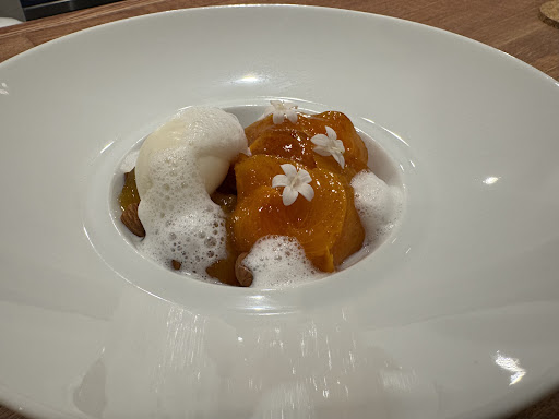 Incredible. The persimmons dessert had (if I understood correctly, and I may not have) persimmon in a kind of glaze, as well as block cut, aged persimmon in a special sauce, accompanied by roasted almonds, almond ice cream, and a milk foam.