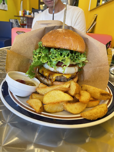 Read moreThe place is nice to stop and have a burger after walking for a long time. Had the cheeseburger with fries and the food is pretty big from the looks of it. The twist is the sauce is tangy soy sauce base which is pretty good (recommend to have less sauce if you care to not eat it messy) . They also have other sauce toppings such as ketchup and mustard if you wish to use them instead. The service was great and do recommend people who like to sit down and chow down a burger after a long walk seeing...