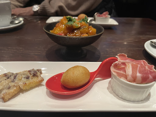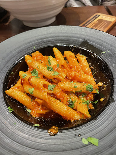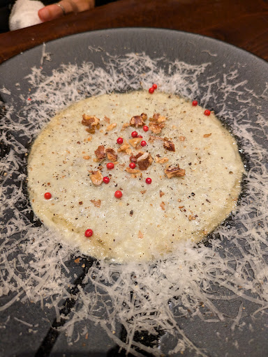We were lucky to get a table when we arrived at 8pm. The waiter was friendly but a little nervous & overwhelmed. No serviettes on the table, so used our tissue paper. When we sat down we noticed that everyone had wet towels but we didn't. Their English menu was hilarious as there were lots of spelling mistakes. We were offered an Amuse-bouches which was surprisingly good. We ordered 1 bacon & mushroom spaghetti and 1 cheese pizza & one vegetable caponata. My pizza came first, it wasn't made to order as it wasn’t hot & rather chewy. The veggie caponata was cold (preferred room temperature). The pasta was good with lots of sauce (tasted more like mushroom soup). Not quite Italian, probably made for the Japanese palate. Overall a pleasant experience.❗️Beware they charge table fee of ¥800 similar to Italian Coperto...