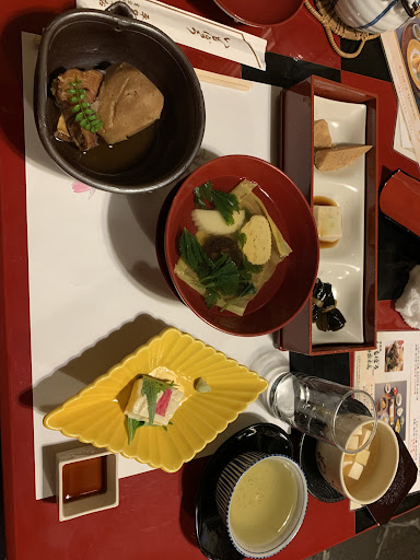 As an adventurous eater from the USA, this is a must-do Kyoto experience. Based on the other reviews, the food preparation methods here are centuries old and offer a unique view into historical Kyoto cuisine along with a traditional atmosphere. The food comes quickly, so come hungry! For the taste you’ll recognize items like Miso tofu, tofu with soy sauce and wasabi on the side, braised pork with potato, green tea, and rice, but that’s where the usual items end. There’s smoked cod wrapped in seaweed (terrific unique taste), a shrimp-potato that is delightfully savory, and the use of spices that I have never tasted before in a variety of dishes. The price is reasonable for the variety of food you’re experiencing. Come hungry...