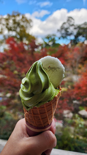 Tea & sweet treats in a Japanese cafe with Mount Inari & garden views.