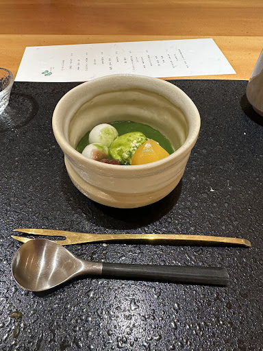 The sea bream rice, accompanied by tsukemono and miso soup was also excellent. Great depth of flavor here as well. A nice matcha dessert finished off the excellent meal.