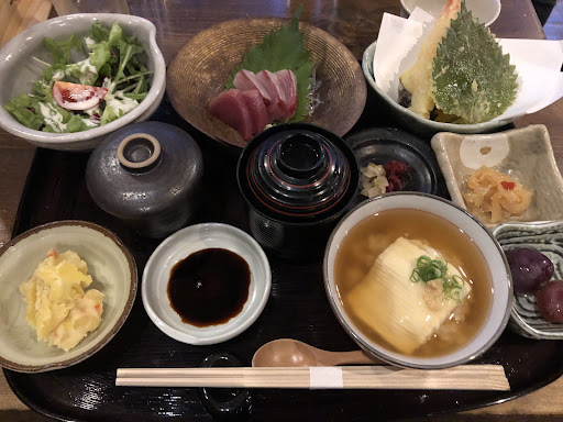 Worst service i have ever had in Japan: There were empty/clean tables, but kept us waited for 10mins+ even we were the only group (2 adults) waiting. We quickly decided which lunch set to order, closed our menus on table & waited quietly & tried to made eye contact with at least 3 waitresses passing around, not success until both of us almost shouted "excuse me" (kind of embarrassing for the noise/volume) Traditional Japanese set supposed to serve rice together with the main course (or even with the sashimi appetizer), but rice & pickles were served last after the rest of savoury food came for 5+ mins I asked for refill my cup of tea - every other table got a jar of hot tea so customers can easily helped themselves, but my table never had this; when i asked for refill, i asked 3 times & waited for 20+mins in total. After finishing my second cup of tea, i actually self-served by getting the jar of hot tea sitting on the adjucent empty table on my own. after we finished the whole course, each of us went to the bathroom, almost asked for the bill - my partner suddenly remembered that our dessert hasn't been served! And not surprising, all waiting staff forgot about our table, once again I felt like we were discriminated because of being foreigners, the staff were helpful and nice to other tables except us. But for a restaurant located in the center of Kyoto,( and they got English menu!) How can you avoid serving foreigners!? In general the food was okay...