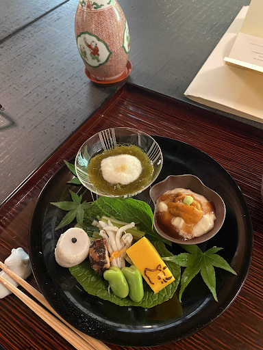 From the moment we arrived to our farewell a few hours later, the restaurant exceeded our expectations. We were looked after by the staff with the utmost care and diligence to detail. Although we were mere footsteps from the often frenetic crowds of Gion, Kodaiji Jugyuan was an oasis of calm serenity and aesthetic beauty. We were seated in a private room with picturesque views of the garden where we were presented with multiple courses showcasing seasonal, local ingredients. Both food and drink were superb and the service faultless.