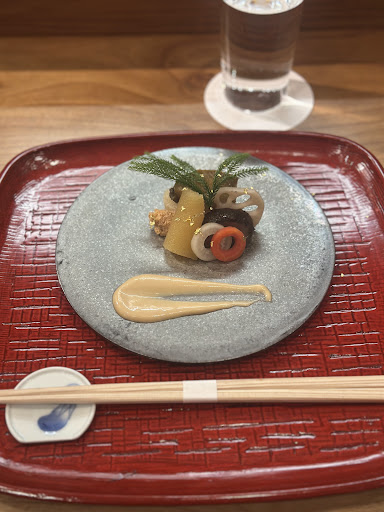 Read moreWe had it in Jan 2025 and it turned out to be the best restaurant we tried in our Japan trip from Tokyo to Oska to Koyto. Each dish was innovative, well presented, yet making sense and flavorful, not like other Michelin one stars we tried in Tokyo and Koyto whose dishes were completely lack of flavor and the ingredients combinations made no sense to me. The chef couple didn't speak perfect English but was kind enough to answer all my questions about ingredients and other stuffs, even showed me pictures and raw ingredients they used. The counter can only accommodate 6-7 guests max, so you got to really see how each dish is made and ask questions, etc. Price was great too, can't complain from any perspective. The whole dinner time is around 2-3 hours, but I enjoyed it from beginning till end.
