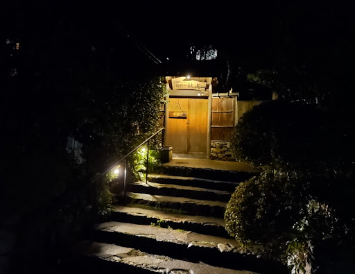 【感想】 予約当日、北山駅から歩いて店に向かう。前述したように閑静な住宅街なのでこれといった目印がなく、さらに夜で暗くなるとますます何が何だか全く分からず少し道に迷ったがなんとか店にたどり着く。 店は玄関からして風情があり、洛北の大変趣ある古民家で昔懐かしい雰囲気が漂う。