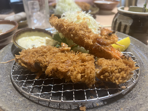 Amazing! We were looking for a restaurant that could give us our first Tonkatsu experience. It was amazing and only a 4 minute walk from the Golden Temple. The shrimps were the star of the show, because of its juiciness in combination with the panko and combined sauce. If I could have ordered some more as a side dish I would have. The only option was one single shrimp for 450 yen. I had the premium tenderloin with 2 shrimps. The tenderloin was half the sice of the loin that my partner had but 1000 yen more so that was a bit of a bummer. My partner had the thick sliced loin (around 1840 yen). Although the taste was absolutely amazing and therefore all 5 stars. You can also grind your own sesame seeds to make the sauce for the Tonkatsu. 👍🏻 We had the restaurant all to ourselves. ‘Watch out’ for the opening hours. In the evening its only open...