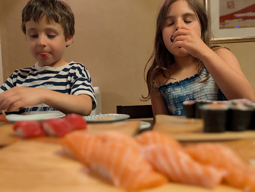 My daughter is 9 and also a huge fan of sushi. She has been working on her Japanese and told the chefs "totemo oishikatta desu". The whole front room was cheering and applauding to hear a nice compliment in Japanese from a little American girl and it made her feel great to have it received so warmly.