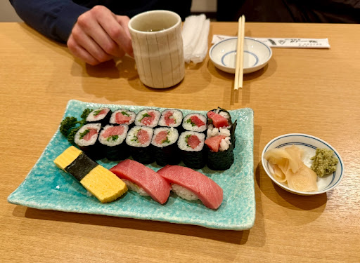 The sushi was the lowest quality we've had in Japan (or most places in the States). It was overpriced and didn't taste good, but I'm more concerned about the freshness. The eel was chewy and some of the other fish was slightly slimy. We both have stomach aches.