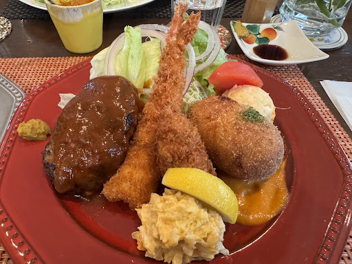 お昼時に伺いました。正午前後の来店でしたが来店時にお客さんはいなくて貸し切り状態。元々SNSで知ったお店ですがちょっとだけ不安な気持ちに😅 店頭の黒板メニューにオススメとあった沙羅らんセット¥2300(店内メニューではMIXとなってました)をオーダー。おそらく店主であろう方からカキフライも勧められたので追加で単品プラス¥300。オーダー後しばらくしてからスタッフの方がライスは別となりますがどうされますか?と聞いてらしたので並¥220追加(他に小、大とありました)オーダー。さて、各お店でいろいろ方針はあると思うのですがランチタイムに店頭にセットと書かれていてスープなしはまだしもライス別はなかなかの営業方針と思いました。メニューも平均的な洋食屋さんを考えれば若干高めなのも気になりましたがそこはお味で納得させてくれると期待!しましたが結果残念ながら😢まず、ハンバーグがデミではなくトマト系のソースかもしれませんが酸味が強すぎて酸っぱい、下手したら傷んだ肉か?とも疑問に!?エビフライはまぁ普通ながらタルタルにコクがない。ホタテのクリーコロッケは不味いわけではないが美味しくもなくソースも微妙。オススメだったカキフライもある程度の大きさはありましたが若干臭う感じであまり良いものではなかった模様。余程のことがない限りあまり辛辣なコメントは書かないように心がけてはいるのですが個人の味覚の問題とはいえどうにも値段と味が釣り合わず今回は正直なままに感想を書かせていただきました。 接客に関してはやわらかな物腰で退店時のお見送りもありちゃんとなさっておられたのですが、飲み水をおかわりしたいときにずっとスタッフさんが厨房に籠もられて声をかけづらく隣の方の配膳時についでのようにお水をついでもらいましたがもはや乾いた喉は早くこの店を出てちゃんとしたドリンクを飲みたい気持ちでいっぱいで飲むのも忘れて退店しました。あとデザートセットを聞いてもいないのにオススメしてくるのもいただけません、おまけに断ると早々に皿を片付けてしまわれては「食ったらさっさと出て行け」と言われているようでかなり不快な気持ちになりました。表面的な愛想の良さだけではなく本当の意味で客の身になって...