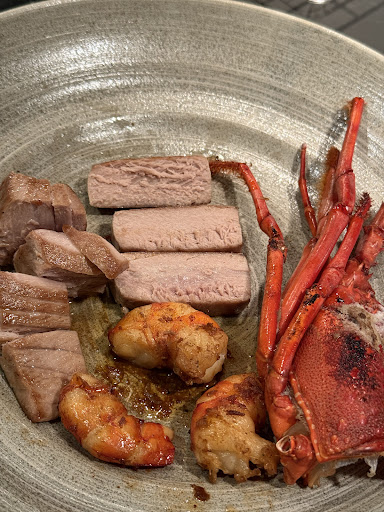 My husband ordered their seafood platter set as we had too much beef for that week so he decided to switch it up. The platter supposed to have a lobster, shrimp and either tuna or salmon, it costed 14000 yen. Surprised! The lobster turned out to be really small and tiny, 3 garlic shrimps, and a slightly acceptable portion of Tuna. Now comes the worst part, the young âchefâ that cooked our kobe wagyu didnât know how to cook the lobster and shrimps, which resulted another âchefâ came to help her. Cooking my lobster became the young âchefâ cooking lesson, and no surprise, my lobster became overcooked and totally dried. As well as my 3 tiny shrimps and Tuna. Overcooked Tuna, hard and dry. My first time having such awful tuna in my 3 weeks japan trip. We purposely left half of it on the plate, thinking that once the waitress saw the portion that we left she might ask why but no, she just took away quickly as in sheâs trying to make us go away.