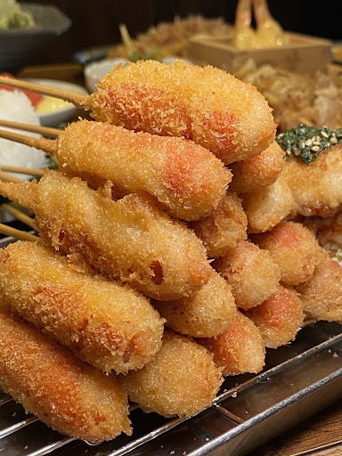 Read more◼︎串カツ1本 100円〜 ◼︎鶏皮揚げ串2本 398円 ◼︎おむすび 各198円 ◼︎夜鳴き屋台風焼きそば 698円 ◼︎トマトスライス 298円 ◼︎枝豆 198円 ◼︎アイス 230円〜 本場新世界の味が京都西院でも堪能できる 小だるま 阪急西院店にお伺いしてきました✨ 丁寧に揚げ上がった串かつは ドブ漬けしたソースと良く絡み 素材の味そのままに美味しく頂けます👏 しかも、かなりのお手頃価格です 赤ウィンナー串は1本100円 15本程注文して 勝手にウィンナーピラミッド❤️ 熱々のコレとビール、最高です 夜鳴き屋台風焼きそばは 甘辛いソースが染みこんでいて 具材が豊富で食べ応え半端ないです 海老マヨは 串揚げ版の海老マヨで これもまた美味しかった マヨネーズと海老は合いすぎです🍤