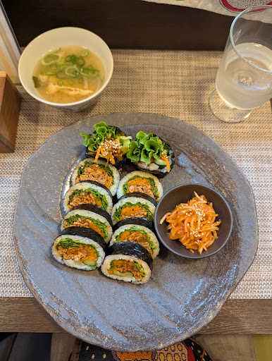 Oiishi Gimbap and drinking hot miso on a rainy day is so comforting!
