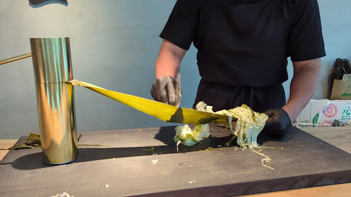 ããšã³ã¿ãŒãã€ã³ã¡ã³ãæ§æº¢ããã©ãŒã¡ã³ã³ãŒã¹ãã 京éœã«ããèèã®æåžå±ãäºèŸ»ã®æåžãããã ãã®2éã§ãå®å šäºçŽå¶ã®ã©ãŒã¡ã³ã®ã³ãŒã¹ãæäŸãããŠãããä»åãèªãé ã蚪åããŠããŸããã ãªãèèæåžå±ãããã©ãŒã¡ã³ïŒãšæãæ¹ãå€ããšæããŸãããåå ããŠçŽåŸïŒè©³çްã¯ãŸãåŸã»ã©ã 1éã¯äºèŸ»ã®æåžãããšããŠæåžã®äœç ®ãªã©ã販売ããŠãããã§ããããã°ãåŸ ã£ãŠãããšæéã«ãªãäºçŽããŠããå šå¡ãé£ãç«ã£ãŠé段ãç»ã£ãŠè¡ãã ããã«åºããã®ã¯ã³ã³ã¯ãªãŒãæã¡ã£æŸãã®å£ã«æž©ããæããæšã®ã«ãŠã³ã¿ãŒã𿀠åããšããæŽèœãé°å²æ°ã®åºå ã å šå¡ãçåžãããšããã§ãäžå¯§ã«æåžã®èª¬æãããŠé ãããªããšæåžã䜿ã£ãŠããŠãªã¥ãŠãã ãããæ±ºããŠéãã§ããã®ã§ã¯ãªããæåžã®éŠããæããŠé ãããã®ãã®ã§ããµããããšéŠãæåžã®éŠãããã°ã楜ãã¿ãŸãã ãã®åŸãç®ã®åã«ããã¯ã€ã³ã°ã©ã¹ã«æ³šãããã®ã¯æ°Žåºãã®æåžåºæ±ãçæåžãå©å°»æåžãçŸ èŒæåžã®3çš®é¡ã®å³ã®éãããã€ã¹ãã£ã³ã°ïŒ ä»ãŸã§ããŸãæåžã®éãã«ã€ããŠããŸãæããããšã¯ãããŸããã§ããããããããŠçŽç²ã«ãã€ã¹ãã£ã³ã°ãããšããããããŸããïŒ ãŸããçæåžãç®ã®åã§åã£ãããŒãæåžãå®é£ïŒé£æã颚å³ãšãä»ãŸã§é£ã¹ãããŒãæåžãšã¯ãã¯ãå šç¶éãé©ããæããŸãïŒ ãã®ä»ã«ããããããšæåžã«ã€ããŠã®åŠã³ãåãããšããã§ãåŸ æã®ã©ãŒã¡ã³ãç䞌ãð