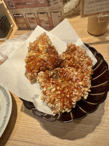 Food: we ordered one French fries with Aosa Seaweed which was 550 yen, Kyoto Mortadelle Ham Okakiage for 600 yen, two orders of the Konana’s Soy Milk Carbonara (the one in the photo with the egg and ham!) for 1,360 yen each, and a strawberry parfait. Everything was good! The Japanese pasta was a bit hard as it should be and the soy milk works well and not makes it taste very heavy like the typical Italian pasta dish. The fries were good too! Taste like seaweed snack chips 😋. The ham okakiage was probably my least favorite of everything we ordered, but the Smokey roast taste was good!