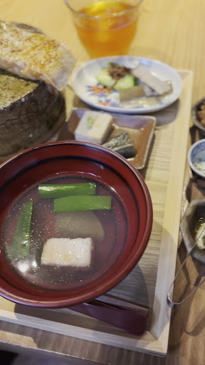 土鍋ご飯、貝汁、季節の野菜のおばんざい 香の物を組み合わせた一膳で提供されます🥢