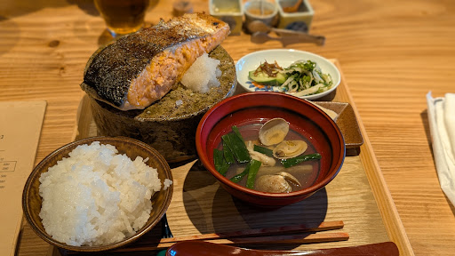 オープンから間もなく、今は朝食のみ、しかも1メニュー(極厚銀鮭定食)のみで提供とのことです。 この銀鮭は博多焼と京都焼が選べますが、ベースは博多焼でいわゆる塩焼ですが、京都焼はタレを付けて焼くので…どちらかというと照り焼きっぽくなるのではないかと思います。(私は博多焼を頼んだので…)