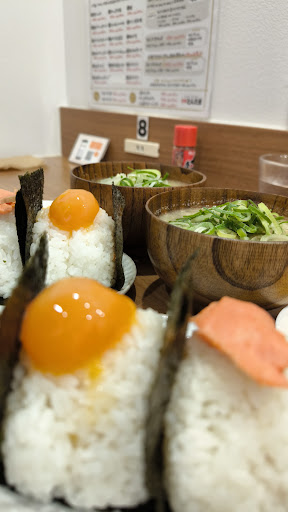 まず、お店が営業してるのかしてないのかわからない時点でやる気を感じられません。 あんなに狭い店舗なのに無駄に多いスタッフ、そして全然研修も受けてないんだなといった感じ。 あの狭さなら普通に注文受ければいいのに、無駄なQRコードで注文システム。 やたらと選ばせるおにぎり。めんどくさい。 普通のおにぎりで十分なのにな…。 テイクアウトできるのかできないのかも書いてないからわからない。 全てにおいて不親切。 おにぎりって個人的に手軽にすぐ食べれるものだと思ってるので、テーブルに出てくるまで10分もかかるのもあり得ませんでした。 手際悪すぎますね。