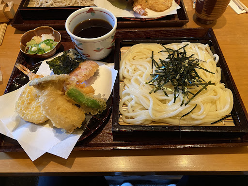 We came here because we couldnt reserve seats at Yamamoto but it didn't disappoint!! There was still a long queue here and we waited for about 30-45 minutes. They have English menu so do ask for it. They would take your order while you are queuing so you dont have to wait a long while after seated. The atmosphere is relaxed and cozy. We ordered the cold udon and soba. The udon and soba are way more chewy when served cold. The savouriness of the soba dipping sauce was just on point. However, the tempura was crispy but too oily, maybe the oil temperature was too low. You cant share tables and often times there are just two people at a four seat table while there only being around 8-10 tables in the whole shop so that explains the long queue outside as the actual occupancy is only around 60% of the total seats. The female shopkeeper is very polite and the overall service...