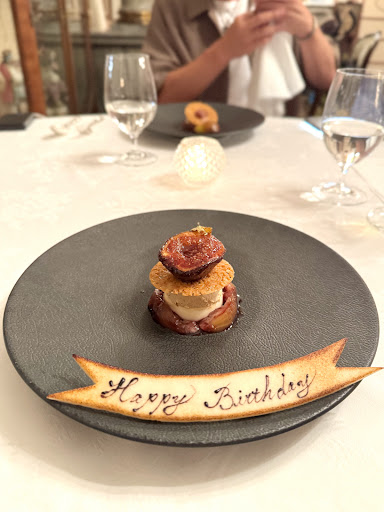 3末 今回くらいシェフにいろいろお伝えしたい食事はないしそれができて胸を撫で下ろせた ここはグランメソンですね ジャムみたいになった温かい淡路玉葱とベーコンのキッシュで舌から鱗みたいなスタート クスクスで菜の花の花蕾の増殖でサンドされた肝 その上に肝の主の富山のぷっくらした蛍烏賊 書いてて思い出してまたぞくぞくする ザ・コンソメなスープを浴びた畑からの使者、、、なんかもう 綿飴を苺ソースで濡らして現れたちょっとスパイシーフルーティーな、、、これはシブーストが辿り着きたい希望を見てるようなモンブラン アオハタ、塩釜仕立てのシャトーブリアン 滋賀ハチミツと山羊のくらいひねりのあるチーズ なんかすごかったです またサーブしていただいた口コミ担当の方が聞いてくれるので夢中でいろいろお伝えできて楽しかったです なんかやっとちゃんとここで食事したと言える自分になれたいい気分です ランチ和久傳にしなかったからだけでないやっとこの料理がわかる人間になれたかのような そういえば八坂神社の蛭子さんへの500円玉でいい旅になりますようにと願ったご利益がここから始まってたのかと驚愕 ほんとに次回の五山の送り火が待ち遠しい いい初夏を過ごします 画像は50が限界なのもこれで知りました ちょっと残念😢ふきのとうはこちらの課題にしときます