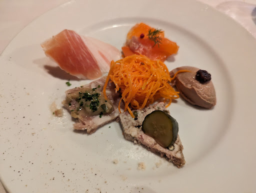 They have set menus priced from 2000ish to 3000ish yen in 2023. We had the Set A, which came with some terrine, liver pate, jamon, and carrots. Main course fish, beef, or upgrade to Wagyu, dessert (a banana and ice cream with balsamic vinegar sauce) and a cup of coffee. I thought I asked for espresso, I got a large cup of coffee. Overall a very nice change of pace in an unassuming little restaurant....