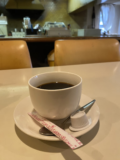 後來加點了一杯咖啡(280円),是用咖啡壺裡面的倒進鍋子加熱,蠻好喝的,不是那種過萃的苦,而是帶一點酸、香氣也足夠。(偷看到一旁客人點熱紅茶,是用鍋子煮水再放茶包的!)