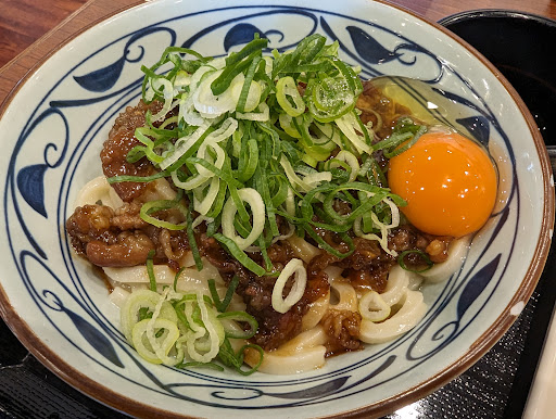 【食事】★4 うどんに関しては言う事は特になく美味。 麺は腰があってプルプルしており、そういう食味を求めている人には最高。 某うどん店とは違って並と大盛以上の価格差はあるが、それを求めるのは酷だろうし トッピングも種類があり、シビ辛ラー油は嬉しかった。 あと“うドーナツ”もめちゃくちゃ美味しい。 しかしサイドメニューの鶏天がかしわのみなのが個人的にかなり不便なので、鶏唐揚げがあれば言う事なかった。 ちなみにいつも行くうどん屋よりお値段安いかと最初は思ったら、天ぷらなど同様に頼むと総額ではほぼ一緒くらいになった。 【サービス】★3 トッピングの隣にある備品のうち、子供用の取り皿がなくなっていたが、店員がピリピリしている様子で話しかけられなかった。 ピークタイム内で仕方ないのか、帰り際に補充されていた。 【その他】★1 恐らくとにかく忙しいためなのか、建って5年経っていないはずなのにトイレの掃除が行き届いていなかったり、手洗い場にハ◯がいたり、入店したらいきなり店員が後輩を叱りつけていたりした。 扉のホコリはまぁ掃除すれば解決するが、何というか客席の間取りが微妙でちょっと居心地がイマイチで、丸亀製麺自体がそういうファーストフード的なお店なのだろうから仕方ないのかもしれない。