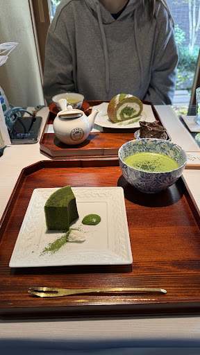 I am not sure what happened with the other guests, but we regret being worried about nothing. We were kindly greeted when we arrived around 11am and were handed a sheet with the available tees. As we knew that social media took a hit on stock of many products, we asked for a recommendation and bought a 40g can of the recommended product. We then kindly asked for a seat in the attached cafe, which has around 10 seats, so its a small cafe. After a short waiting time which got prolonged because of some "influencers" having to take 200 photos of a tea and a biscuit, we were kindly seated with a menu card and some words of explanation from the extraordinary friendly staff. We ordered a biscuit role and the Baumkuchen which all were ABSOLUTELY amazing - a piece of food art, not as sweet as many other confectionery we tried in Japan, and with a perfect taste of matcha. We ate it together with a matcha and a herbal tea, which were delicious as well. The staff explained every item in detail and took their time to kindly answer some additional questions we had.