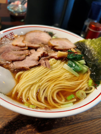 Read more前に店前を通ったことがあり、気になっていたお店に行ってきました。 みみおさんです。 トタン屋根風あり、提灯あり、電光表示あり、看板ありと、外見から面白そうなお店です。 ちょうどお昼の開店時間近くに訪問、待ちは無かったですが、7-8人のお客さんがいらっしゃいました。 中もはちゃめちゃwww(すいません)、少し薄暗いのですが、木のごつい柱あり、カウンターあり、洋風もあり、天井ツギハギ風もありと、ついつい見廻したくなります。 カウンター4席、2-4人席のテーブルが5つ程でしょうか、その時はお若い女性も男性も1人で来られていらっしゃいました。 さて、注文は口頭でするスタイルですが、大将がワンオペでされているようで、厨房におられると、調理に専念されていて気が付かない事があるようです、来店に気が付かず声がかかりません笑笑 他のお客様の料理を運ぶ際に声をかけて注文成功👏 おすすめを聞いてチャーシュー麺にしました、待つこと5分くらいかな、昔懐かしい中華そばのような見かけ、食べたら美味い、少し麺が煮不足で粉っぽい気がしましたが、直ぐにベストな状態に、チャーシューもホロホロで美味しかった。 麺もつるつる、七味や胡椒、イワシを付けたお酢もなかなかの味変アイテムです。 最後まで汁も飲み干してしまいました。 美味しかったです、ご馳走様でした。 結構濃い味わいを想像してたけど、めっちゃアッサリ。 昭和の中華そばな味わいでした�...