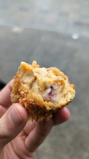 Read moreSuch a lovely little shop! We came during off-peak hours, around 4. There were two shopkeepers who were both friendly and spoke/understood english. The placards for the croquettes were in japanese and we were sounding out the katakana before we noticed the English menu on the wall. We tried the salmon & dill, blue cheese, octopus, and plain. They were all fantastic. 4 croquettes per person were perfect for a quick lunch. Total cost was 1640 for 8. I’d absolutely come back! Note: there was a sign that said takeout only when we were there. Not problem, we just walked a block to where there...