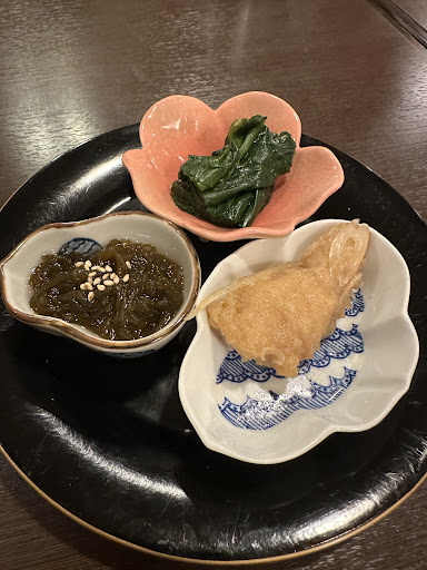 I ate here with my wife and although the food served was good, the price was high for the portions served. The 3 stars are for the quality of the food. Upon entering, the place felt quite traditional and we where welcomed and shown our seats from the owner, which after few minutes gave us a menu in English. However, upon reading the menu we learned that there is a customary entrance "offered" to all guests at the price of 500¥, and there is where our dining experience got ruined: either you offer the entrance or you don't. Imposing something to a customer is not OK, and it felt like it was aimed particularly at tourist, as was charging for hot green tea. The food offered was excellent, however the portions where small and the price (menu price does not include taxes) compared to the portions are quite high. The point is: if I want to eat gourmet food I go to an high end restaurant, but if I go to a small family owned restaurant, I expect abundant dishes at a reasonable price, which we did not get. We got out hungry and ended up purchasing...
