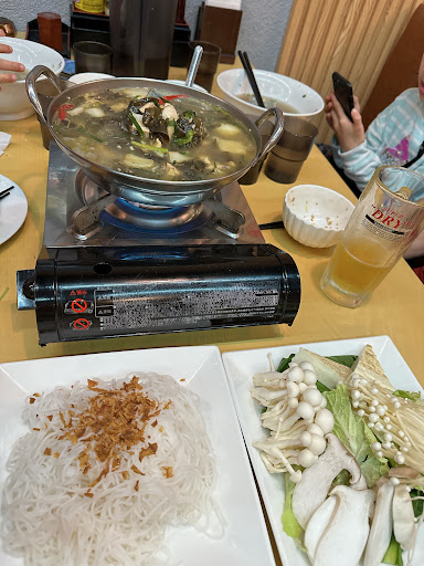 Read moreI have to admit that I got confused and thought it was an other Vietnamese restaurant in the area, with mechanical stairs, also near a hotel but with a lot of vegetarian options! So I was disappointed not to find them, not crepes, bahn mi or other vegetarians dishes I saw on internet in the other place 😅😁 The waitress was really sweet and always making sure we have enough water, she could speak English so she ask a waiter to come. He didn't understand much, he got confused and brought us 2 orders of fish (one pho and one other) when we decided only one but it was too complicated to explain. My mum liked the fish pho even if it was a little too spicy for her, but the fish fried was not her taste, she left it. I had fried tofu and vegetables, it was good. Nobody asked at the end if we liked or had a good experience and we had to pay cash and didn't know about that, so we were not...