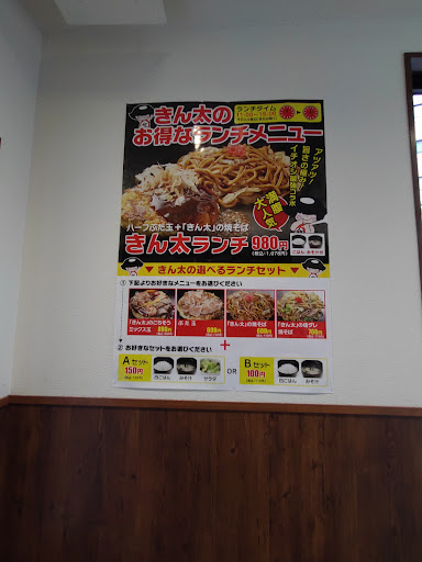 ◆注文品名: きん太ランチ お好み焼きと焼きそばのW主演に脇役のライスと味噌汁でランチの満腹劇場が開催