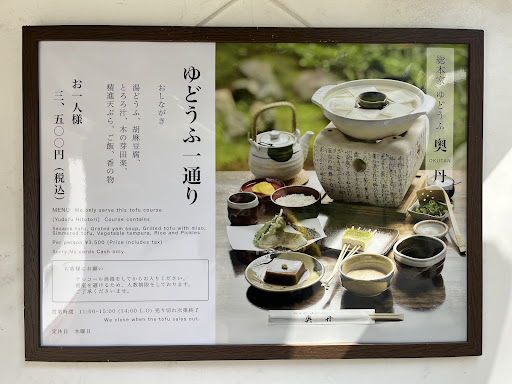 Read moreVisited twice in 2017 and 2018. Only one set is available in the menu which is the Yudofu Hitotodori set (Boiled tofu set). It may not be for everyone, but from my personal opinion, it is worth to give a try if you like vegetarian or tofu made foods. Since I went there 2 times in 2 different years, I can tell they were able to maintain the same quality food. I especially loved the Tofu that you have to put some green onion with some Sansho pepper (Japanese special spices) + a little of soya sauce. However, the "grated yam soup" that you can pour over the rice may not be for everyone. It has a slimy texture.