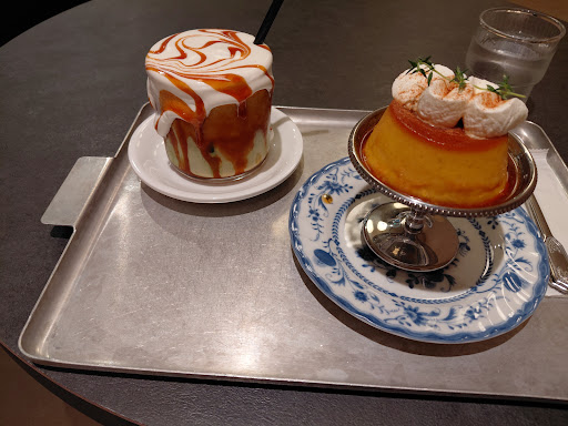 An eclectic cafe specializing in coffee and French pastries with its own roastery. Find your way here by taking the stairs or elevator down to the basement level of Hotel Miyako; you don't need to be a guest to come. Look past the conference rooms for the weird mixed media art installations and you'll know you're there. I was drawn here mainly because I wanted a break from all the matcha, and was pining for a cafe with good espresso.