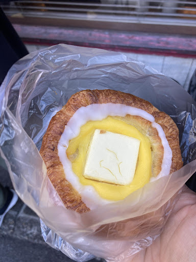 おすすめは半熟卵と分厚いハム?ソーセージ?がはさまった、ロールパンのようなパンにサンドされたもの220円です。お店の中では若干お高めですが、ボリュームもありますし、なによりこれだけ具材が入っててもパンのほのかな甘みが感じられました。 クロワッサンはサクサク系がお好きな人には物足りないと思います。バターの香りもあまりしないです。クロワッサンにソーセージが入ったやつはピリ辛で美味しかったです。普通のクロワッサンよりこちらをおすすめ。 あとは冷蔵庫みたいなところに置かれていたフルーツバスケットというデニッシュにカスタードクリームとチェリーやブルーベリージャム?が載ったパンが美味しかったです。粉砂糖?がまぶされていてしっかり甘い...
