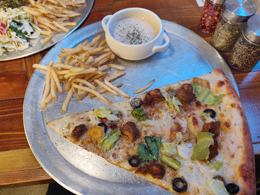 この店には、期待を抱かずにはいられない要素がいくつもあった。 雰囲気は最高。バーカウンターもある。スタッフはとても感じがいい。値段も良心的。 こんな場所でピザをつまみながらのんびりできたら――まさにオアシスだ。