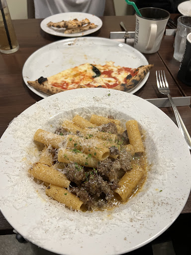 The food was amazing. We started off with some red wine and then we had the Mimosa pizza (made with fresh cream, ham, corn, mozzarella and parmesan cheese). It was a light and flavorful pizza.10/10