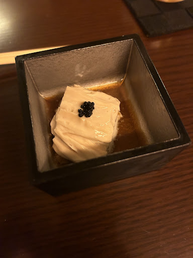 The Wagyu was exceptional. The exterior had a gentle crisp while the inside remained tender and rich. The marbling was perfect, giving the meat a deep, buttery flavor without being heavy. It was simply one of the best Wagyu pieces I have ever had in Kyoto. The salad was another highlight. The dressing was balanced and flavorful, the greens were fresh, and the roasted onions and cherry tomatoes added a wonderful texture. Even the rice stood out, sticky and aromatic with a comforting depth of flavor. The miso soup was flavorful and strong, though a touch salty for my preference. The mochi were soft and filled with sweet red bean paste, a gentle and satisfying way to end the meal. The tofu with caviar was interesting in taste and presentation, though the texture was not quite to my liking. The tea and the Yebisu beer were both excellent accompaniments to the courses.