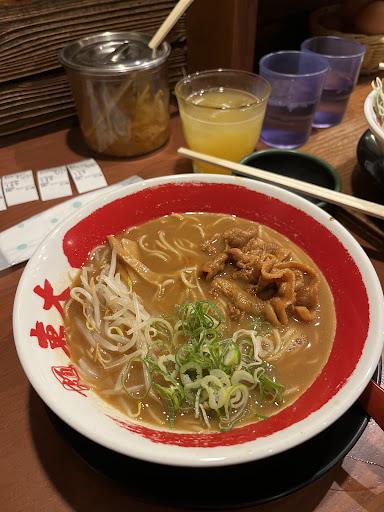 Read moreTo be honest I only tried this place, since there was a long line of waiting customers. But I was not disappointed. The broth is kinda spicy and there are a lot of spring onions, so you should probably avoid this place if you don't like either of it or maybe try the white miso broth which shouldn't be spicy. I also recomment the special ramen, since the smoky flavored pork is worth it. As many reviewers already mentioned, you have free raw eggs and also spicy marinated bean sprouts as a side dish, which you could refill as much as you like. This place is also really foreigner friendly, since there are plenty of signs in english and the ticket vending machine also has a english subtitle. All in all, I was very satisfied and...
