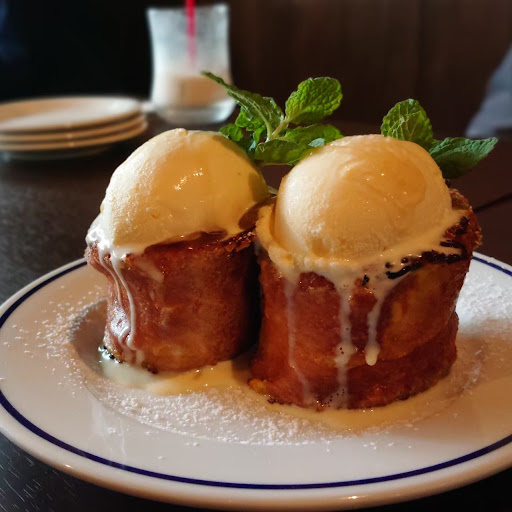 ・フレンチトースト(800円) 食後にフレンチトーストをオーダー。トーストはめちゃくちゃ分厚くてびっくり! 上には大きめのバニラアイスがどどんと2つ。見た目のインパクト抜群。 これだけ分厚かったら中まで味が染みてないんじゃない?と不安に思っていましたが、実際は中もちゃんと染み染み! 表面は少しパリパリで、中のしっとり感との異なる食感も一度に味わえました♪