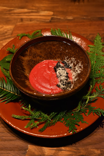 こんな凄い店がまだ知られてないなんて‼️シェフの情愛伝わる料理は近代アートのよう‼️ 小さな川にライティングされた建物。 大きな扉をあけると店内も照明が美しく、テーブルには赤い器にグリーンとナプキンが彩られています。 ライトアップされた美術館が窓の外に。 もうこのレストランの虜です。 【Altaコース】14500円を頂きます✨ 【さといもとラディッシュ】 シェフが2つ折りの大きな葉を目の前でパッと広げます! ころんと2つのお野菜。 「きぬかつぎ」という、皮ごと茹でられた里芋と、ラディッシュはなんとシェフの畑でとれたもの‼️😳 「手で収穫する気持ちでつまんで欲しい」 とシェフ。 え、こんなのみたことない‼️ 素敵すぎる演出に、異世界に来たような衝撃。 【大原ビーツ】 スープのようなムースは真っ赤‼️ もう芸術品!✨ 美術館にきて、現代アートを観ているようです! ふわっふわっな食感と、フルーティなあまみ✨ カチョカバロのチーズと、更に底にあるパンとアーモンドクランチは、ほどよく香ばしく。 ふわふわとカリカリの旨みは重厚なクラシックコンサートを聴いているよう。 たまらなすぎて、顔を手でおおってしまう。 感情が追いつかない‼️ 【イチジク】 赤いシートはきなことバルサミコ酢で生ハムのような塩気を産み出している! そこへ自家製のチーズはサワーのような爽やかのある甘さ✨ ポン菓子のような食感⁉️と思ったらスペルト小麦。 いちじくのトロリとした食感も合わせて、全てが一体となって最高のソースです✨ 【アオリイカ】 茹でた後、薪の遠火にあててあるそうで… ふんー!香りがっ! 藁でできた家に行ったような香りが口の中に広がる! 柔らかくて、しっとりな食感。 燻製のような香りとオイルが鼻にぬけて。 もう喋れない、香りを逃したくなくて。 【トルテッリ】 鹿のコンソメスープを目の前でくるりとかけて。 見た目も可愛いパスタ生地はラビオリの一種だそうで、食感にこだわって自家製‼️ もちもちより少し硬めの、むふむふとした食感に、高級中華のようなスープと鹿肉の風合いが合わさってラザニアのよう✨ 【フォカッチャ】は しっとりしてるのに、コンソメスープをスポンジのように吸い込んでいく。 このパンスープは止められない😭 もちろんおかわり。 【自家製タリアテーレとトンビまいたけ】 野生のきのこはシャキシャキで、自家製のタリアテーレとの相性バツグン‼️ パスタはスッとしています。 お肉もたっぷりで、香りもいい。 【美山の鮎】 今の時期の鮎は骨が硬いからと、ひらきにし、内臓を発酵させて薪で調理。 スイカときゅうりのソースは意外と見ない組み合わせだけど合う‼️ 一匹の鮎を2人で頂いているので、盛り付けも一皿ずつ違うのも素敵✨ 【美山の鹿肉ハンバーグ】 え、やらか‼️ フォークとナイフで触っただけで分かる。 もう口の中に運ぶ前に解けていくじゃない‼️ 表面カリカリでこんがり。 香りがふんっと鼻をつき、ジューシーさがやってくる✨ 鹿肉がこんなに美味しかったことがない。 その肉汁がしたたり落ちていく。 付け合わせのぬめりすぎたけは、緑でいっぱいの美山がみえる✨ 自然のお味で歯応えはプルこり‼️ デザートはわざわざカウンターの部屋に移動する。 チャンネルを変えて、よりゆっくりして欲しいというシェフの心意気👏✨ 【たまごのデザートプリン】 プリンとは思えない美味しさ。 牛乳のフレッシュさと、カラメルの苦味。 【ロゼワインで作ったわらび餅】 きなこで作ったブランマンジュの、ザクザクとした食感の下から現れるロゼのフルーティさ✨ ぶどうもさすがワインペアリングもあるお店!という濃厚さ。 【お茶菓子】 •メレンゲ...
