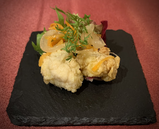 A mixed experience. First though it is a quaint, slightly old-fashioned room in a restored house. The service was impeccable - well except for removing a wine glass before all the wine was finished. (No problem. I retrieved it!) The food was a little more varied in quality. This is a set menu with the option of wine pairings and so you are in the hands of the chef. Unfortunately it started poorly with first a rather bland chicken nugget dish and then scallops and pineapple. This latter was a ghastly pairing not helped by the salad leaves that played no role at all in the dish, and the uninteresting dressing. I was dismayed!