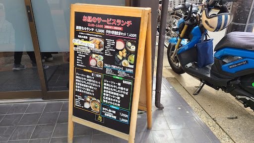 こちらのお店、知り合いに聞いてみたらやっぱりそうみたいです。 あら!?よっちゃんのパパさんも来てますね。 それでは早速お邪魔ンボ(=゚ω゚)ノして来ます。 13時にお店に到着。 お店横にバイクを停めて 店頭メニューを確認( ᯣωᯣ )ジィーー うーむ、週替わりサービスランチかな!? 中へ入りますよ!